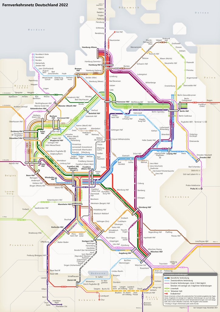 Please also make sure to have a look at the newer version of this map, the map showing the “Deutschlandtakt” or the map showing the night trains.