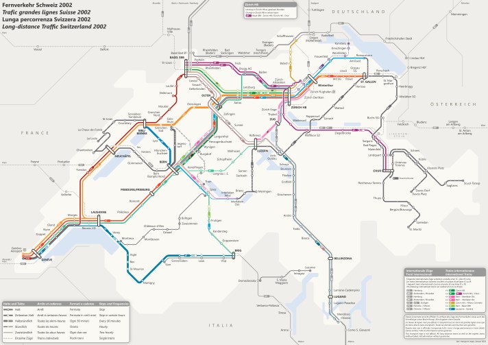 Note: I do not have detailed information about the services in 2002. Please be aware that some of the services labeled as IR could also have operated as train type “Schnellzug”, “Train direct” or “Treno diretto”.