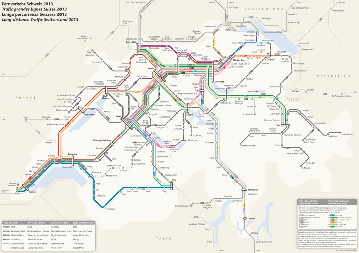 • 2014-2018: Gotthard Base Tunnel from Erstfeld to Biasca, opening of the CEVA (Geneva-Annemasse), new service concept between Zurich and St. Gallen, introduction of line numbers