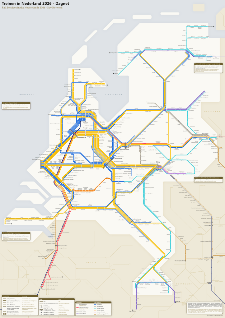 The year 2026 has brought some smaller changes to the Dutch railway network. The changes can be seen in comparison with the 2025 diagram of the Netherlands. The major changes were: